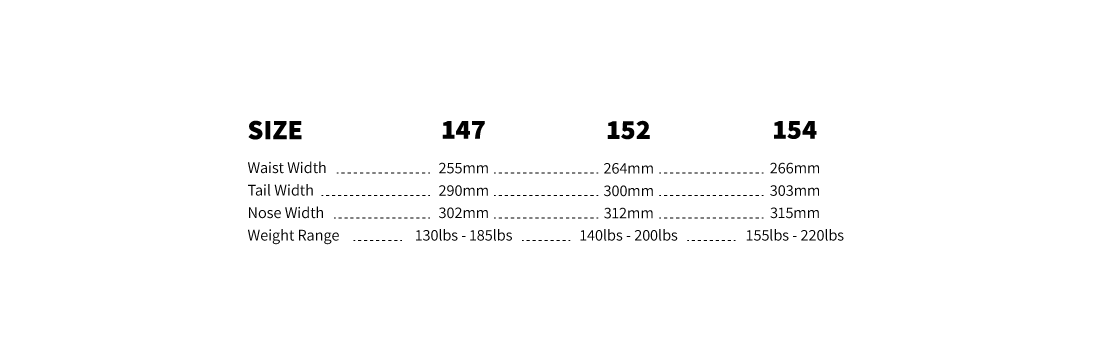 SIZING RECOMMENDATION: This extra width and shape allows riders to size down around 5cm from their usual board length without sacrificing performance.